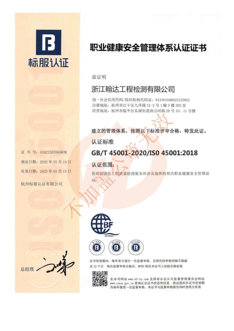 職業(yè)健康安全管理體系認(rèn)證證書